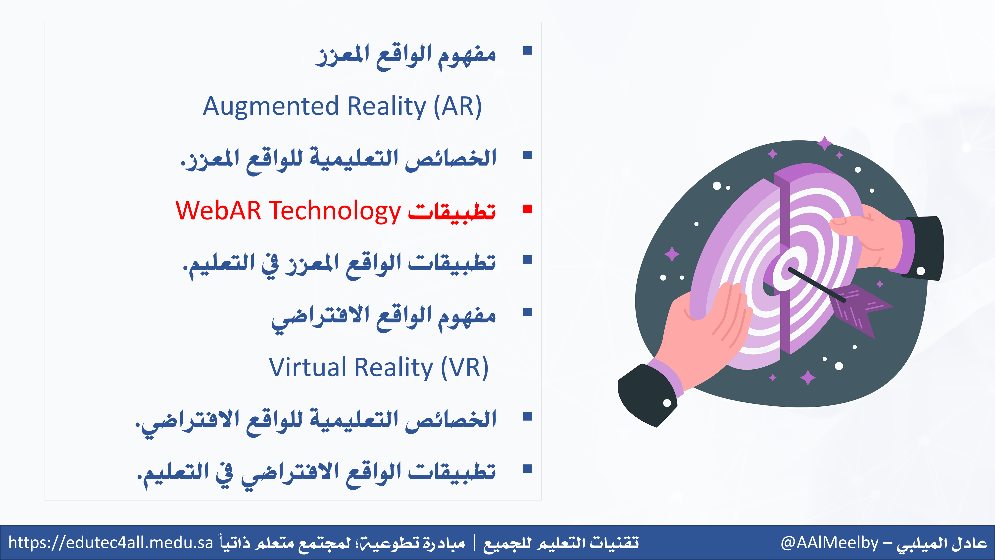 يسرني أن أشارككم ملف العرض لمحاضرة الواقع المعزز والواقع الافتراضي في التعليم حرصت أن يكون الملف تفاعلي بحيث يرشدكم إلى مراجع المحاضرة ومواقع الشركات والتطبيقات التي استعرضناها أثناء المحاضرة قراءة ممتعة.