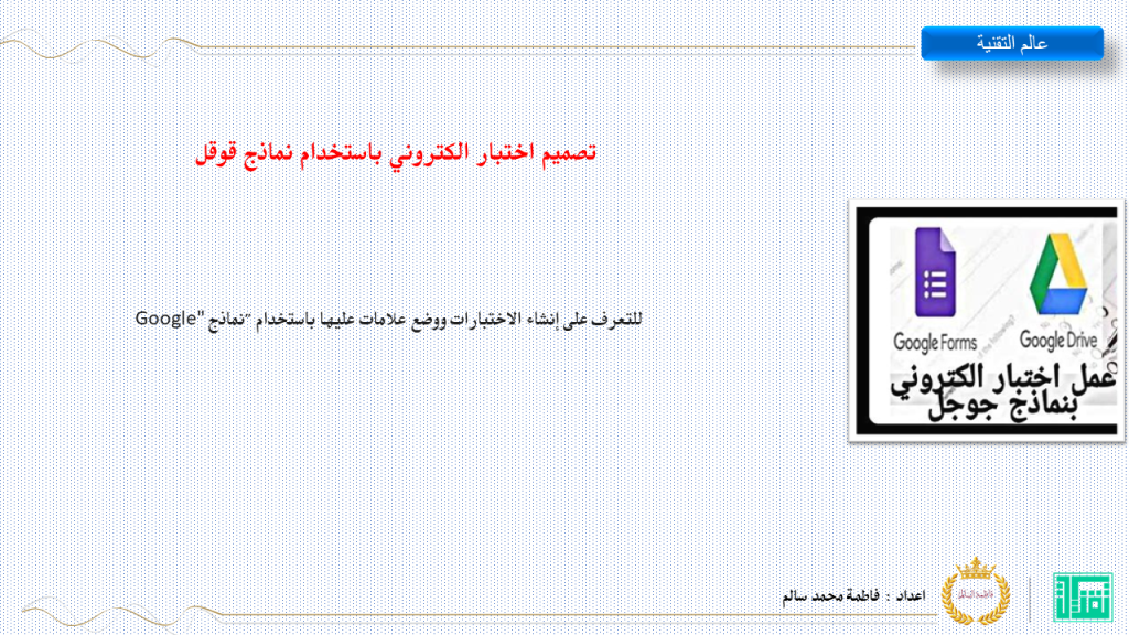 يسعدني أن أشارككم في الملف المرفق خطوات تصميم اختبار الكتروني باستخدام نماذج قوقل .