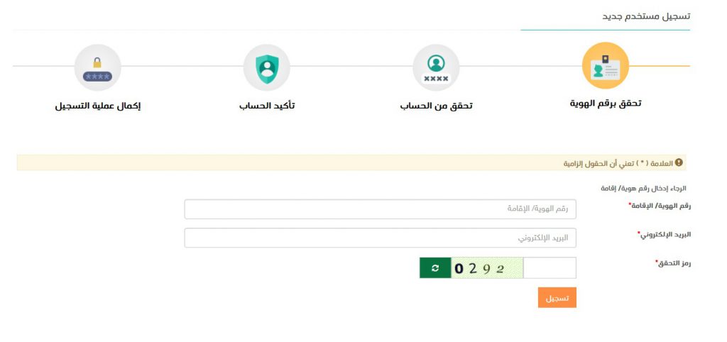 - ادخل رقم الهوية أو الإقامة ثم رمز التحقق في الصورة ثم اضغط على زر تحقق.