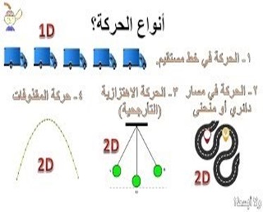 الحركة الانتقالية | في هذا النوع من الحركة يتحرك الجسم في خط مستقيم ولذلك يطلق عليها اسم الحركة الخطية مثل سيارة تسري بسرعة ثابتة. |
