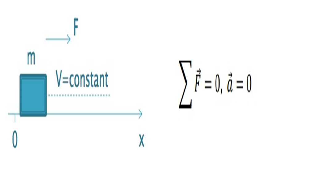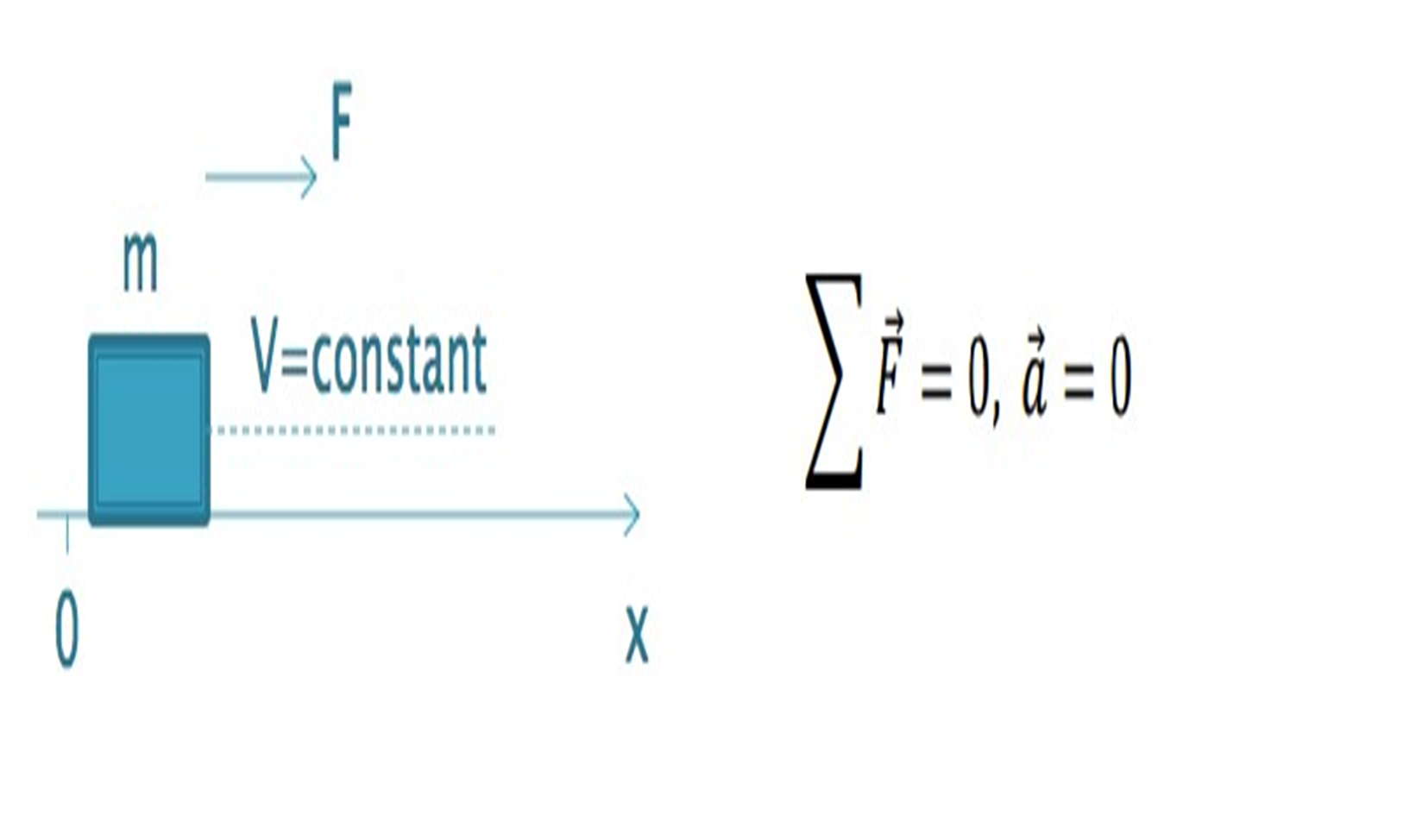 ينص على أنه: يبقى الجسم الساكن على حالته الساكنة، ويبقى الجسم المتحرك بسرعة ثابتة في خط مستقيم على حالته من الحركة ما لم تجبرهما قوى خارجية على تغيير حالتيهما. أي أن حالة الجسم لا تتغير طالما أن محصلة القوى المؤثرة عليه تساوي صفر.